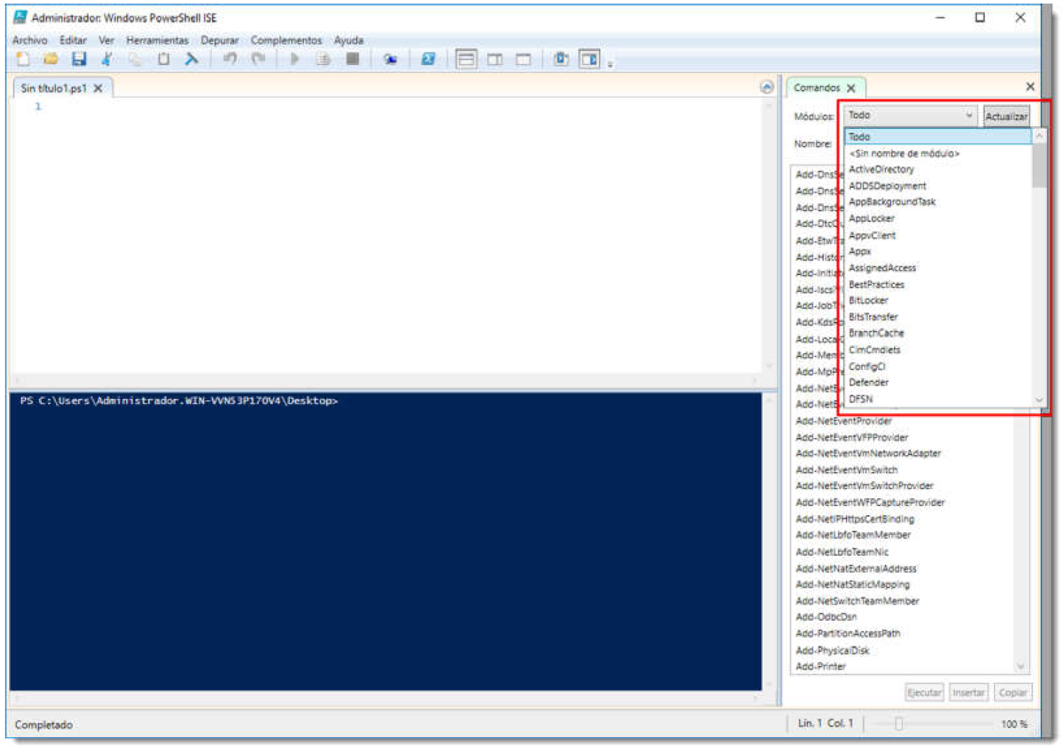 - Si escribimos este cmdlet en el recuadro