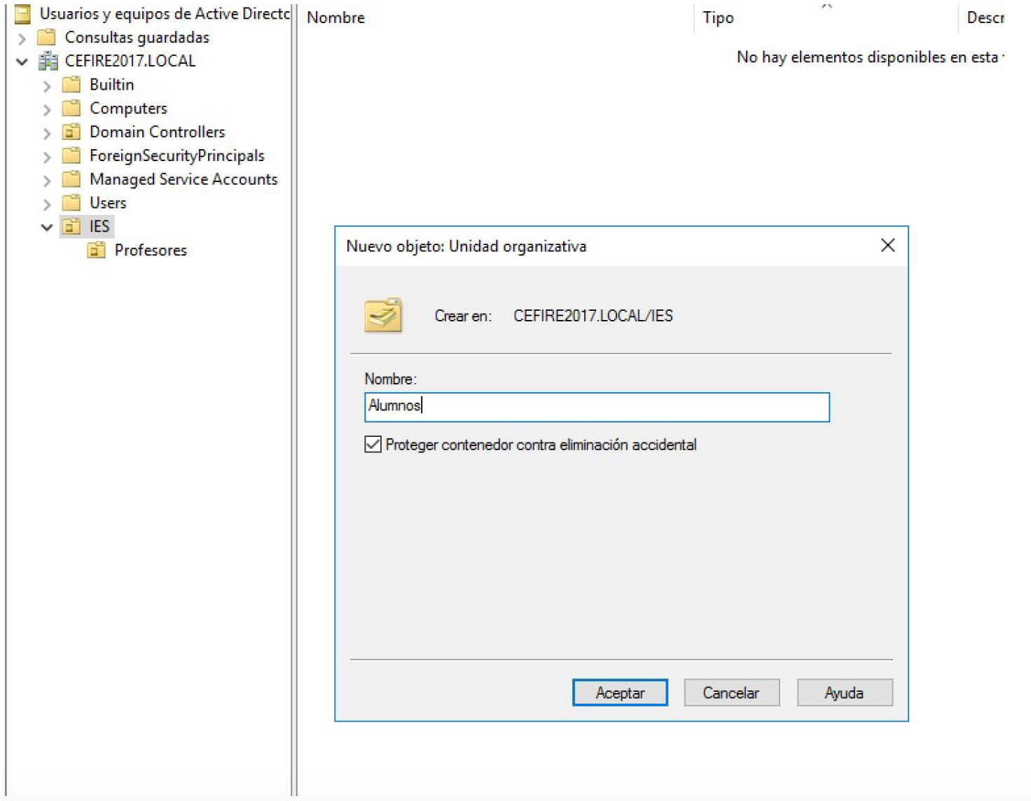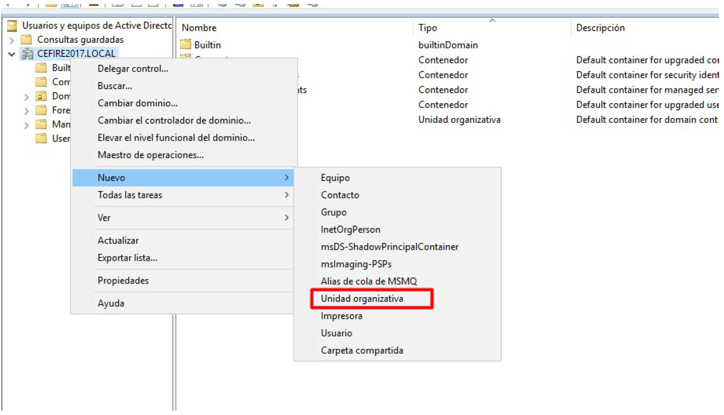 1. Crear unidades organizativas mediante interfaz gráfica¶