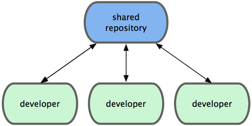 Los cambios son guardados localmente y no se comparten con nadie. Esta arquitectura es la antecesora de las dos siguientes.