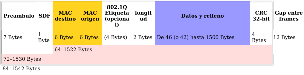 - Dirección MAC origen: identifica el dispositivo que envía la trama