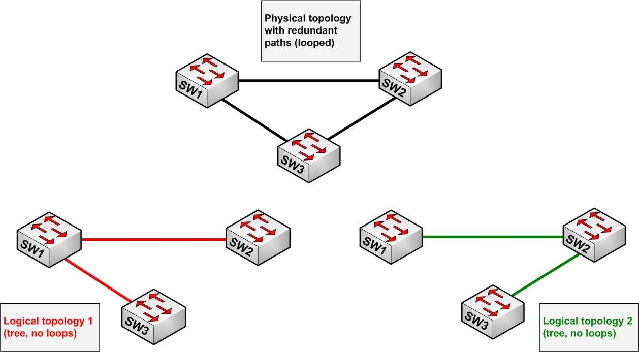 SW3 <-->|"Enlace 3<br/>(Bucle)"| SW1